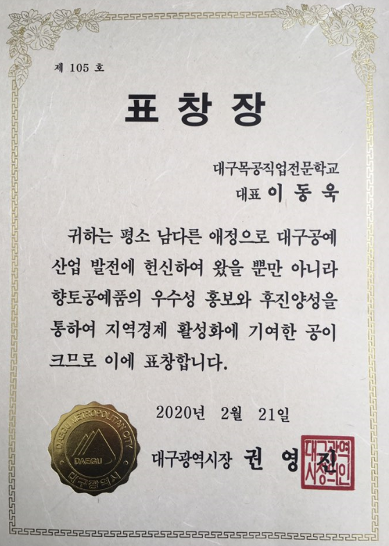 대구광역시장 표창장 수상
