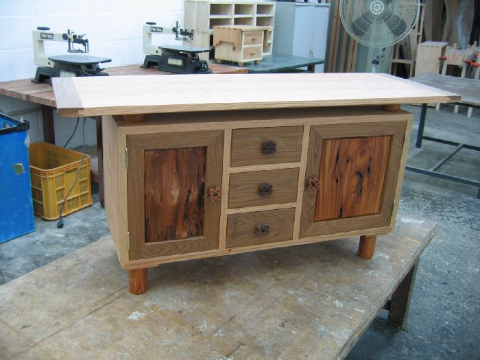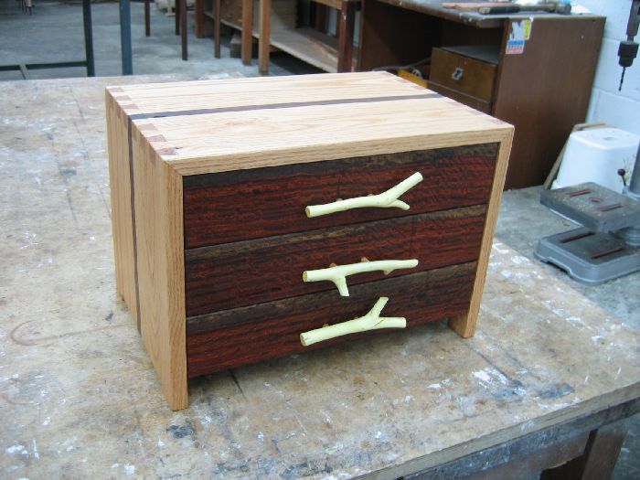 홍가링, 오크, 월넛, 등나무줄기를 이용한 서랍장.