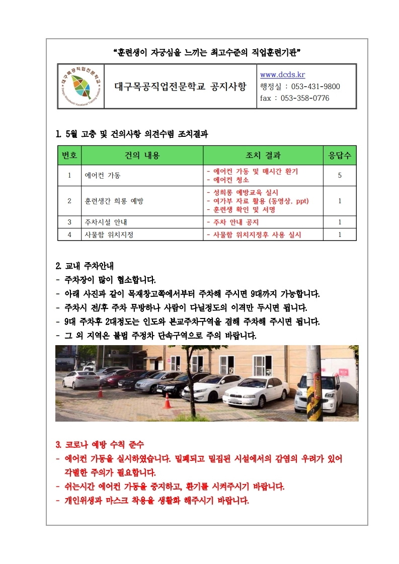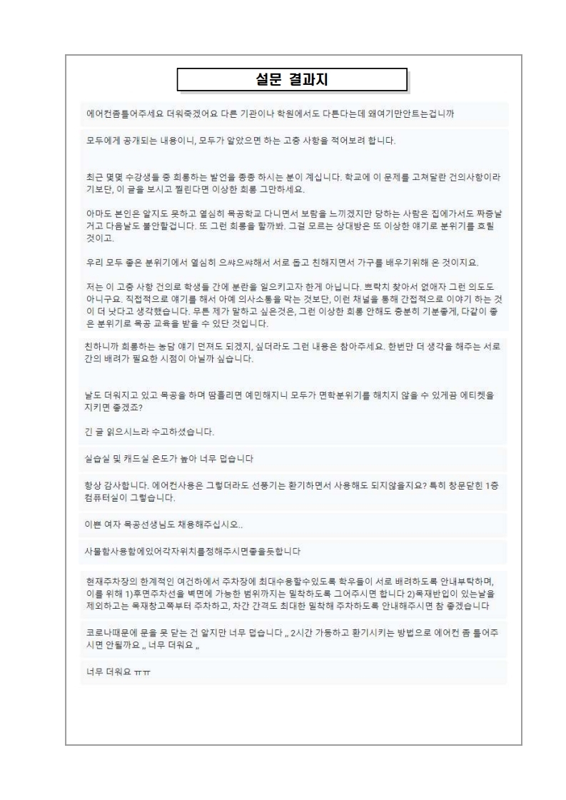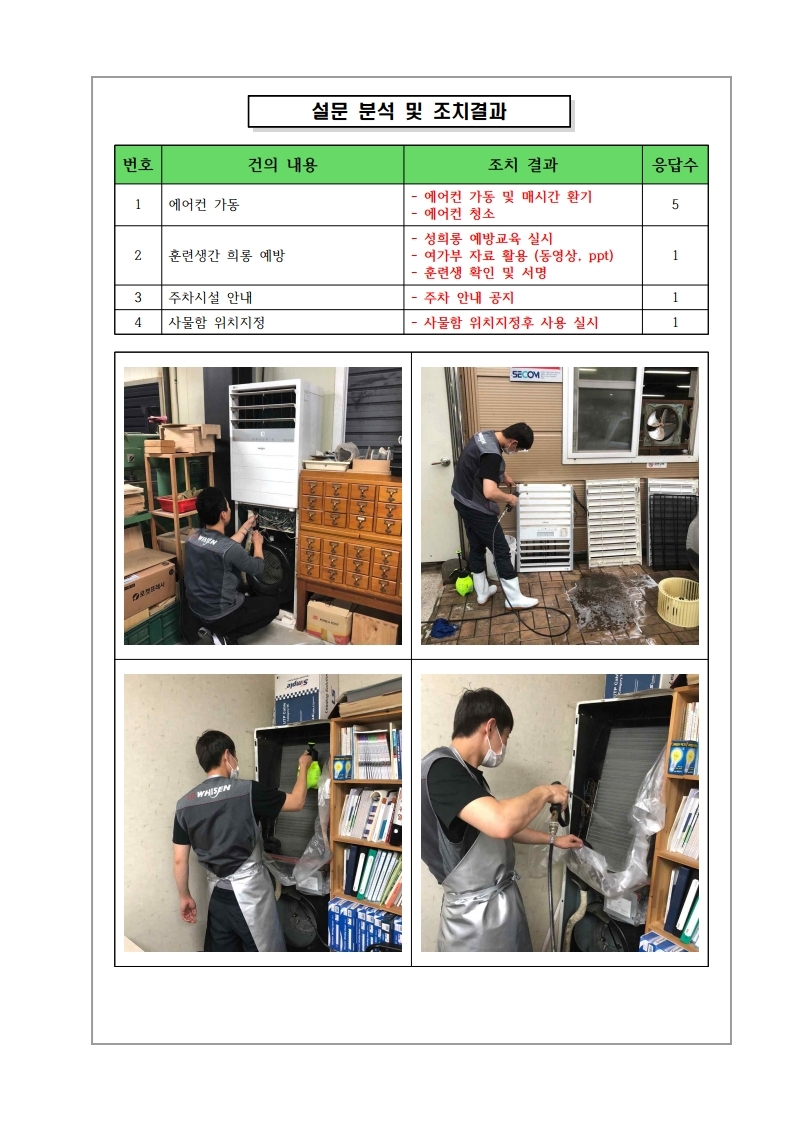 6월 2일 ~ 5일 실시한 훈련생 고충 및 건의사항 결과에 대한 조치사항입니다.