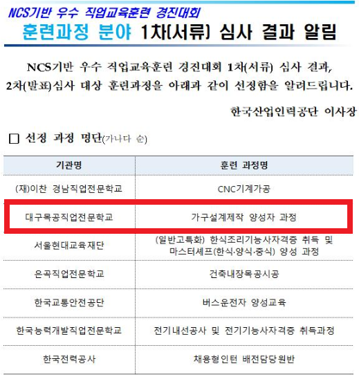 [2020년] 2020년 NCS 기반 우수 직업교육훈련 경진대회 1차 심사결과