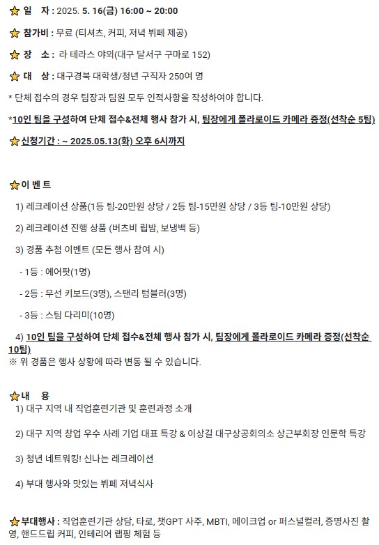 대구지역 대학생/청년 구직자를 대상으로 취업 준비에 대한 어려움을 공유하고 소통함으로써 취업 의지를 고취하고자