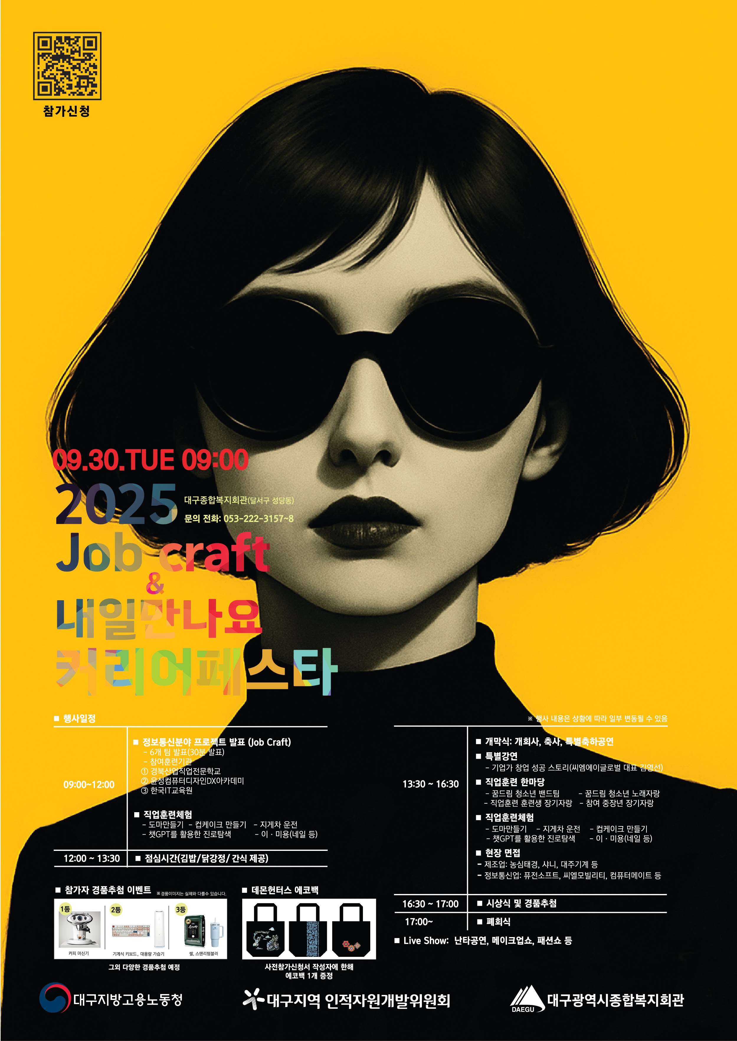 대구지역인적자원개발위원회에서 『잡크래프트 X 내일만나요 : 커리어페스타 2025』를 개최합니다.